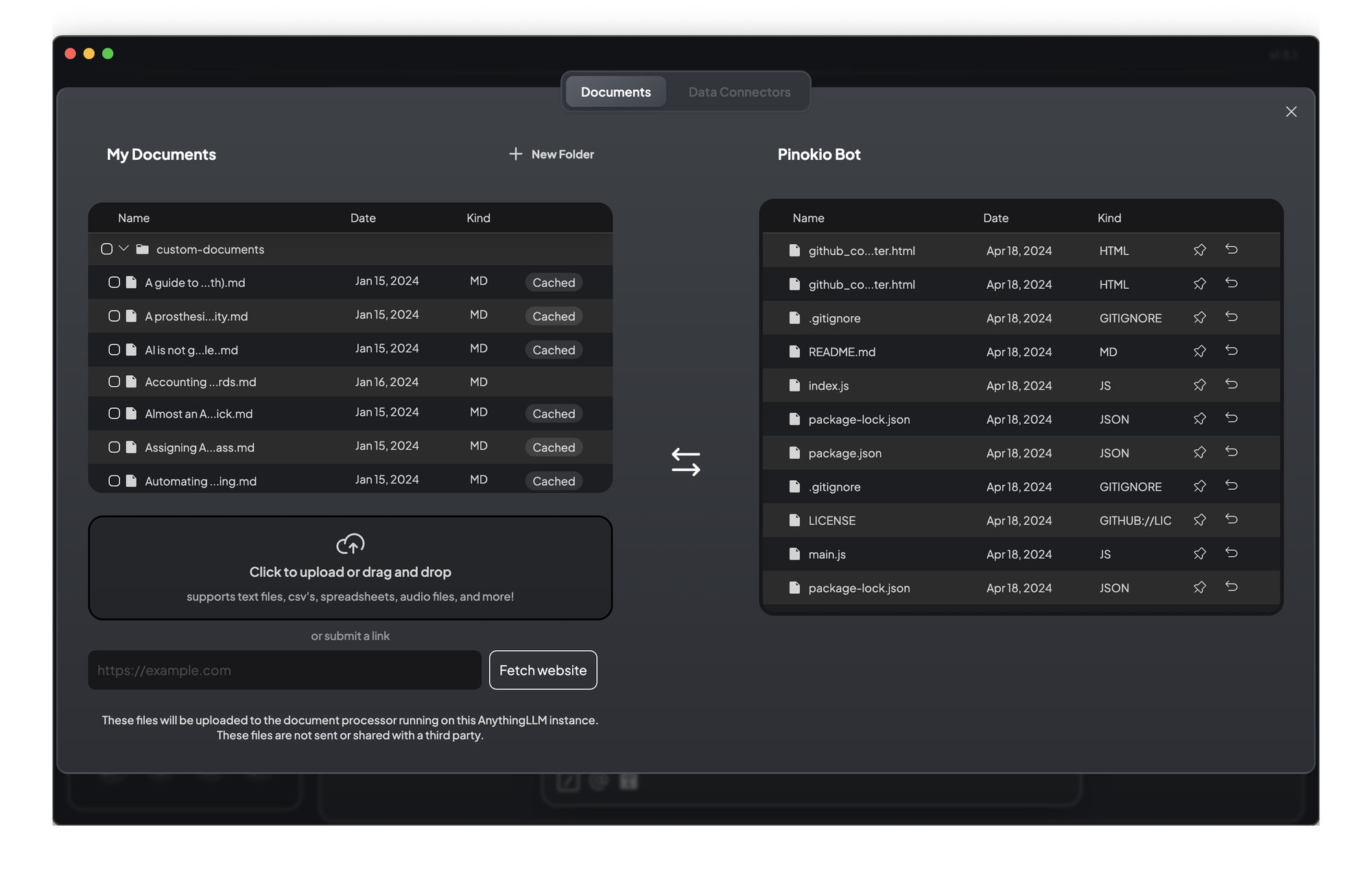AnythingLLM makes it simple to add files, github repos and more to a vector database
