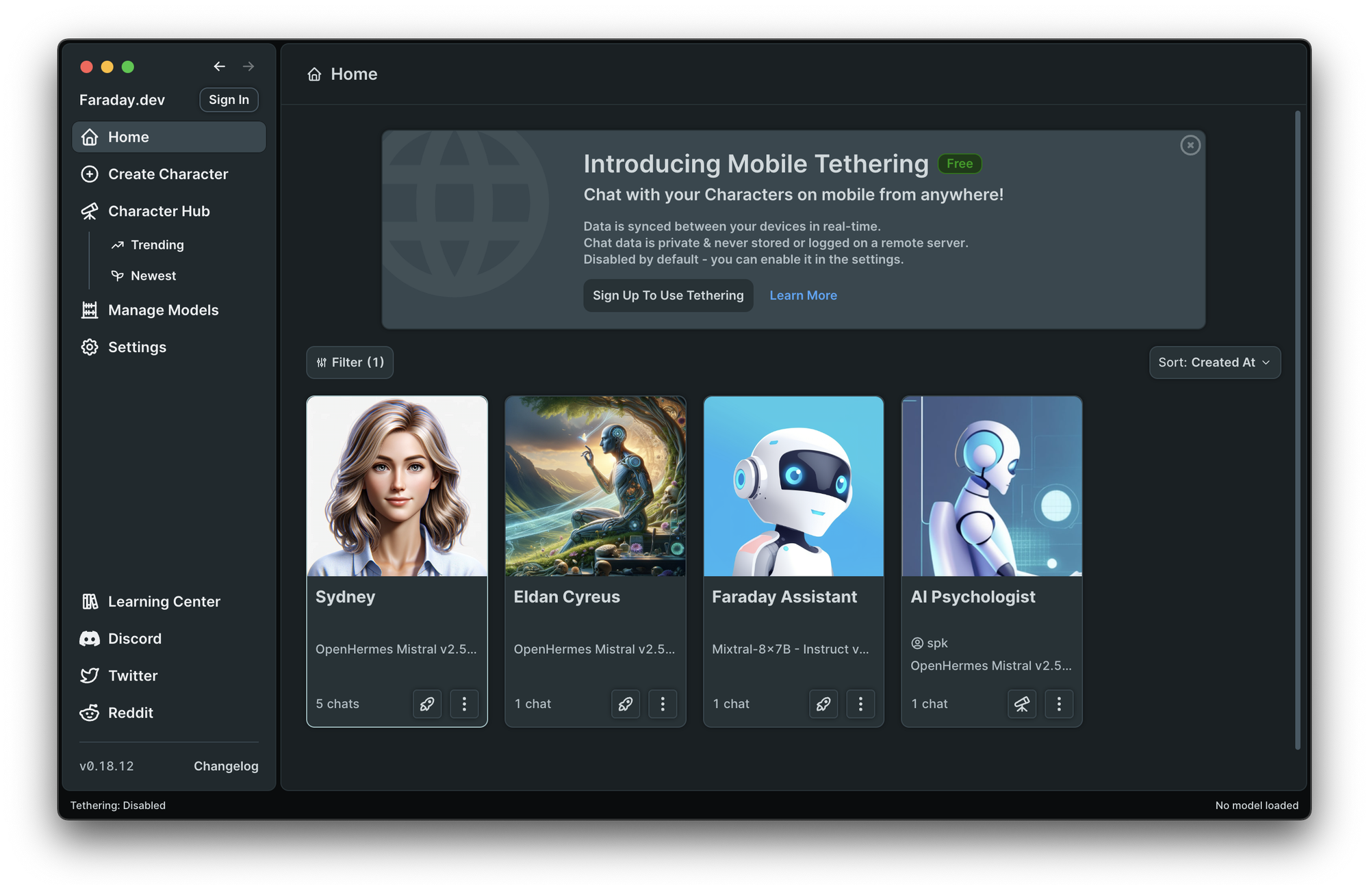 1-click install. No models included. No proprietary/remote models. Same as LM Studio - Works with any model on hugging face with GGUF. These are downloaded and stored locally. Average UI/UX. Closed-Source. Privacy policy page (lots of "Click here" to learn more links that don't go anywhere). Faraday is really focused on roleplaying chatbots. This includes NSFW bots and is important that you be aware those options exist and can be promoted within the app directory. If that's not your thing, thankfully it's a simple checkbox to filter it out. Perhaps in the future they'll have this toggled off by default in the future.